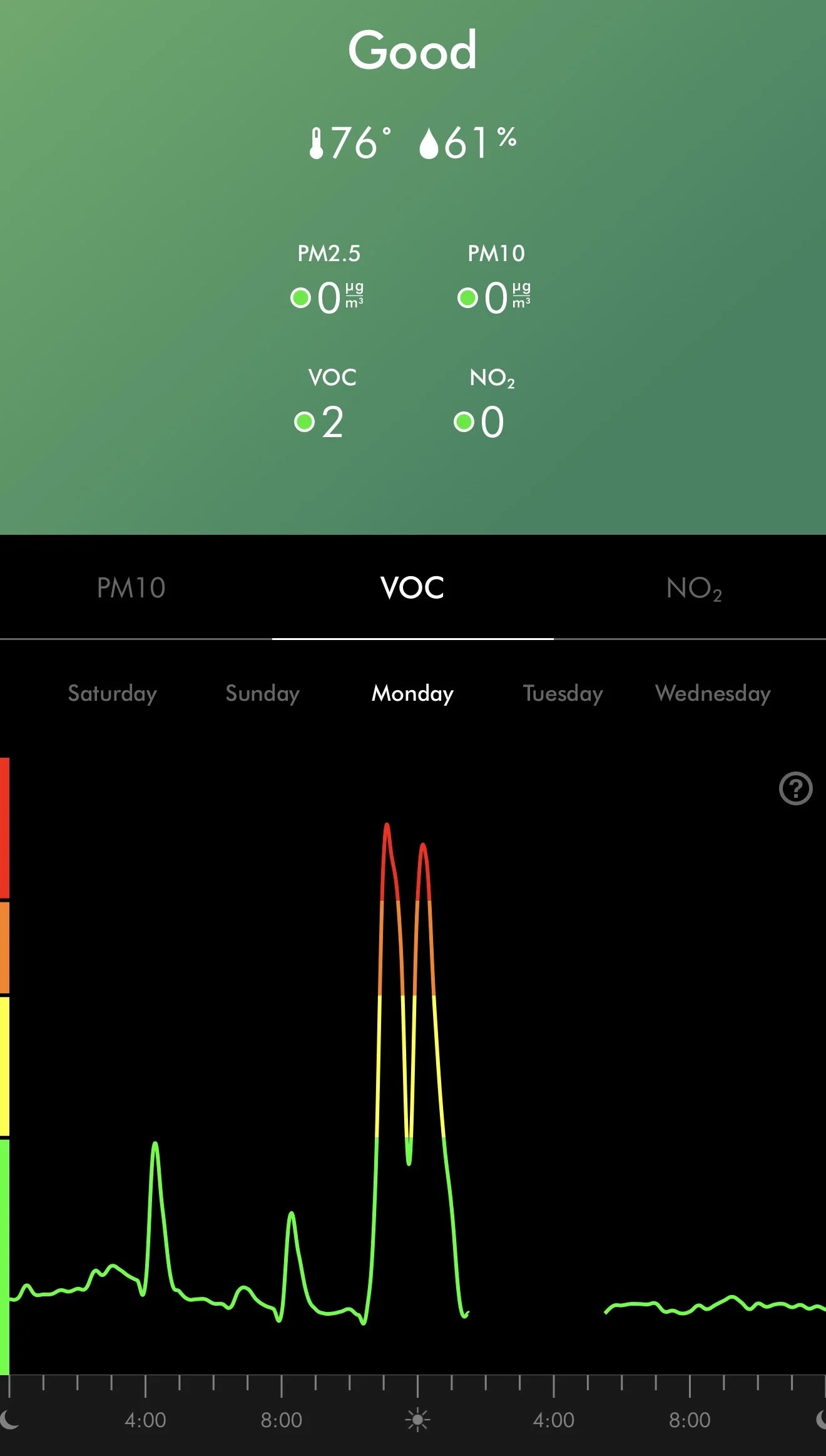 Takeaway: Great at detecting a broad spectrum of pollutants, especially VOCs that come directly from styling products.